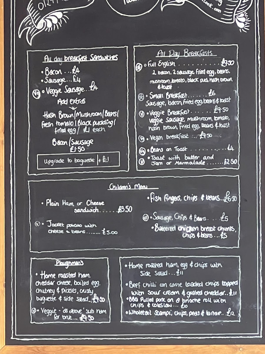 - All Day Breakfasts: Options including a Vegan Breakfast, suitable for those seeking a plant-based morning meal.